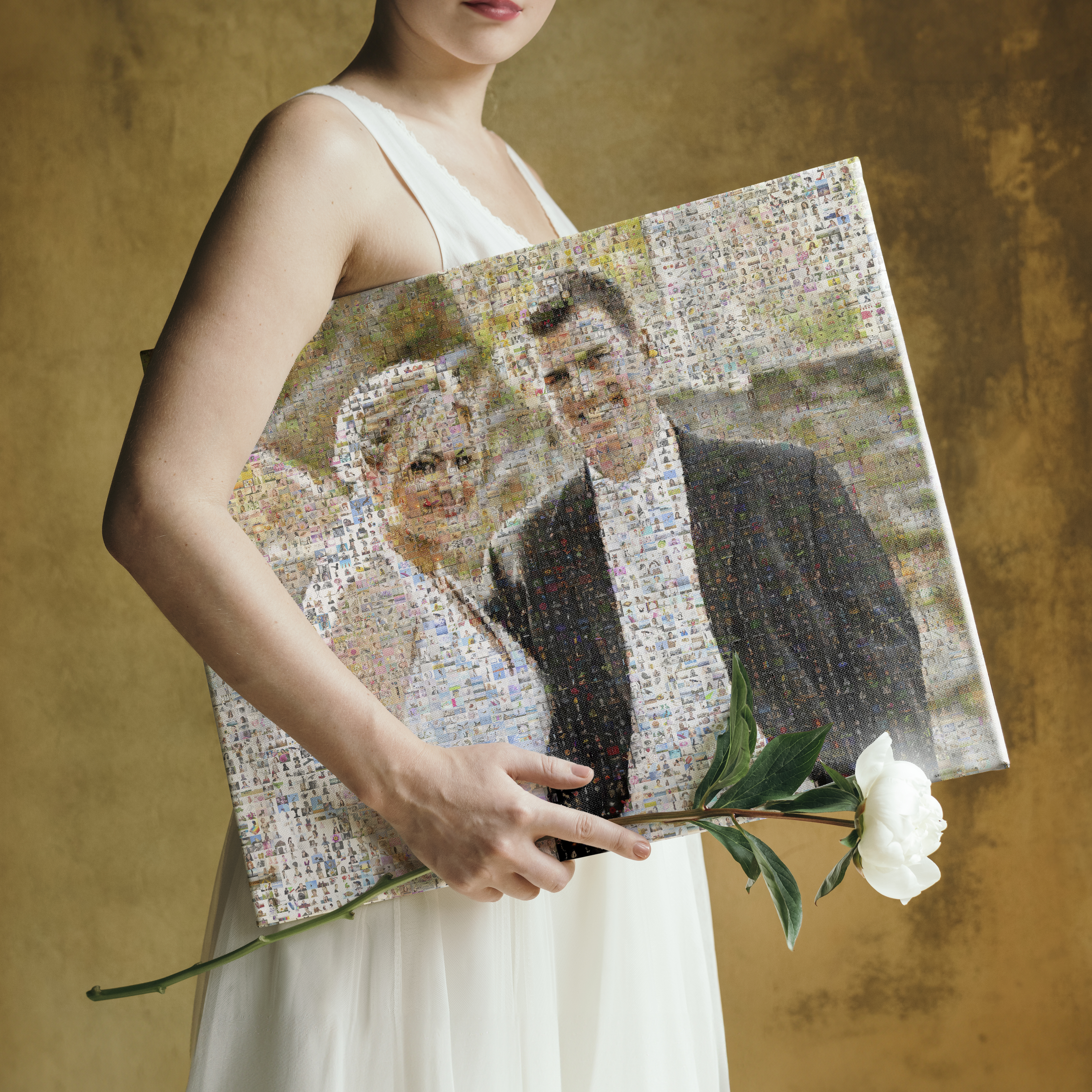 ¿Buscas un regalo único y lleno de significado? Crea un fotomosaico personalizado como un especial regalo de boda. Imagina una imagen grande y hermosa de la pareja de novios, formada por un sinfín de fotos pequeñas que capturan momentos significativos. Ideal como un recuerdo personal y decorativo para resaltar en su hogar.