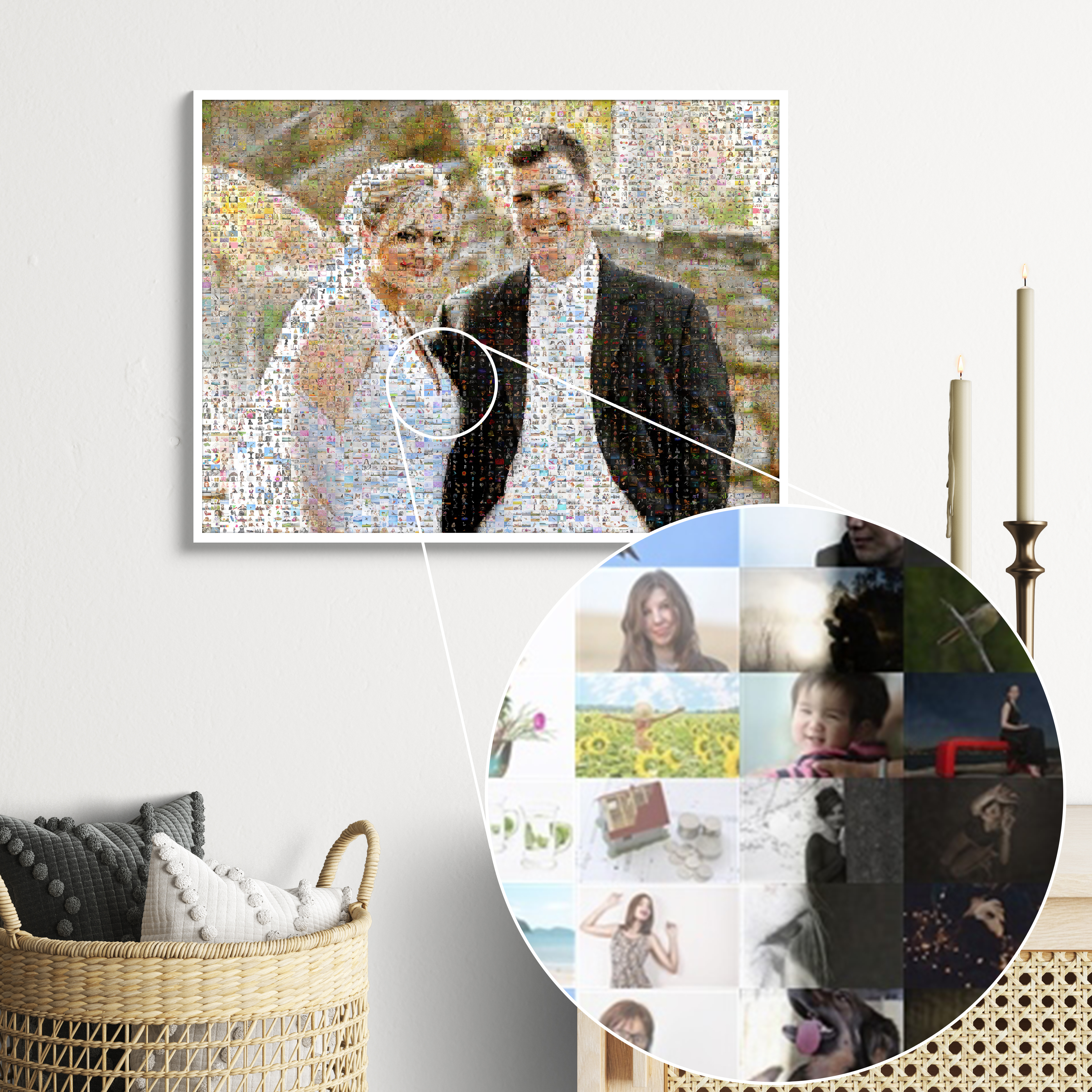 Mosaico fotográfico único como regalo de boda: Recuerdo personal y decorativo inolvidable.