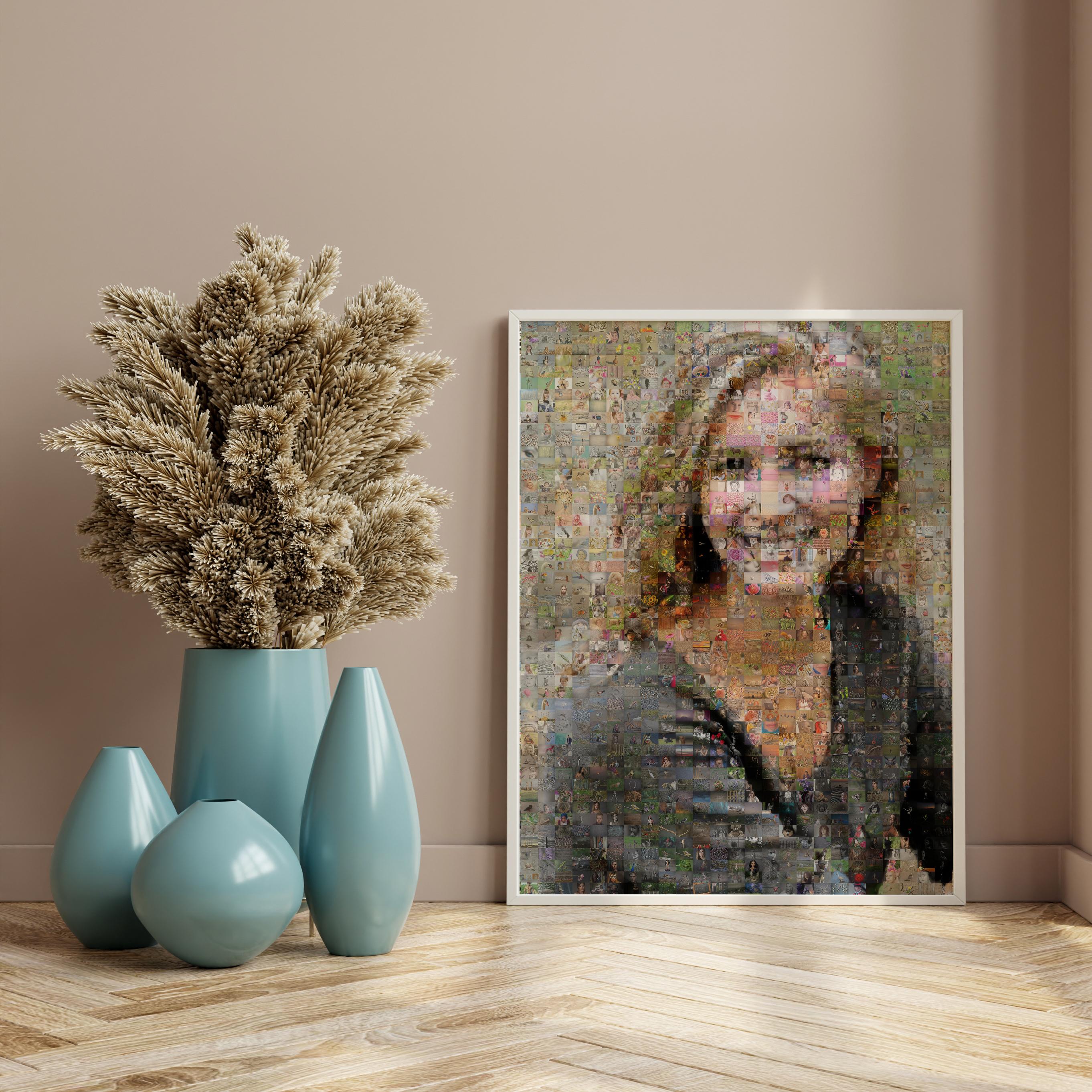 Crea un recuerdo único y personal con nuestro fotomosaico. Imagina un retrato detallado de una mujer compuesto por tus propias fotos, un toque artístico ideal para decorar tu hogar o regalar a un ser querido. Este producto es perfecto para quienes desean inmortalizar sus momentos especiales o sorprender con un regalo genuino en cumpleaños, aniversarios o celebraciones importantes.